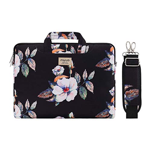 Price review MOSISO Laptop Shoulder Bag Compatible with MacBook Pro 16 inch 2021 M1 Pro/M1 Max A2485/2019-2020 A2141/Pro 15 A1398, 15-15.6 inch Notebook, Hibiscus Carrying Briefcase Sleeve Case with Trolley Belt